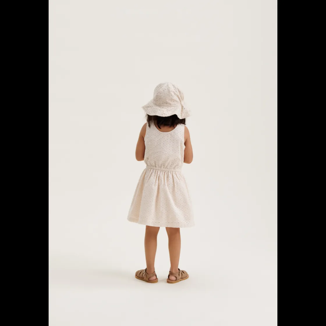 Der leichte Amelia Sonnenhut mit Lochstickerei hat eine große Krempe, um Gesicht und Hals deiner Kleinen zu schützen. Die 100% Bio-Baumwolle sorgt für ein schweißfreies und atmungsaktives Tragegefühl.