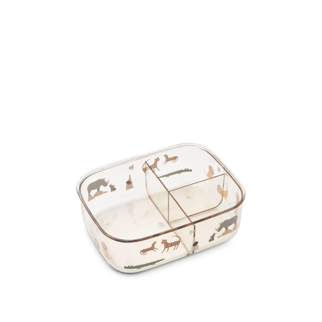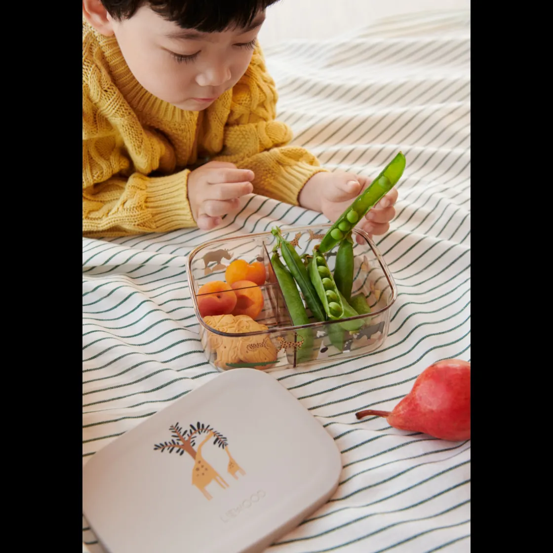 - Transparente Tritan-Lunchbox mit flexiblem Silikondeckel, verziert mit verspielten Aufdrucken