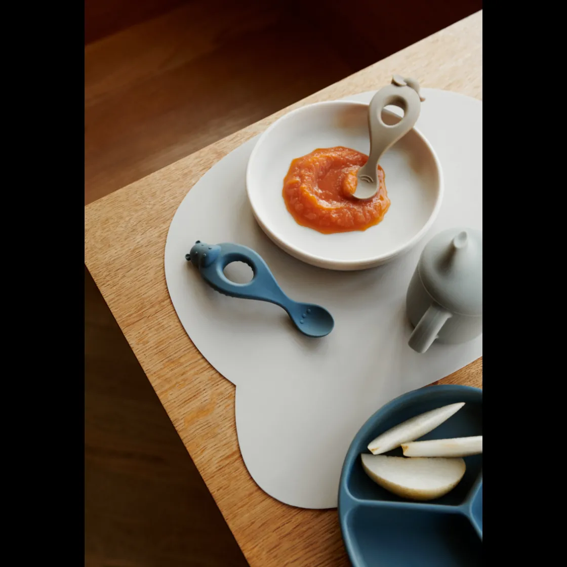 Ein Muss für die Mahlzeiten, das Ihnen und Ihrer Familie jahrelang erhalten bleibt. Die Aura-Tischmatte mit niedlichen Tierdetails besteht aus rutschfestem Silikon und macht die Mahlzeiten weniger unordentlich, da sie leicht abzuwischen oder einfach nach Gebrauch in die Spülmaschine zu geben ist.