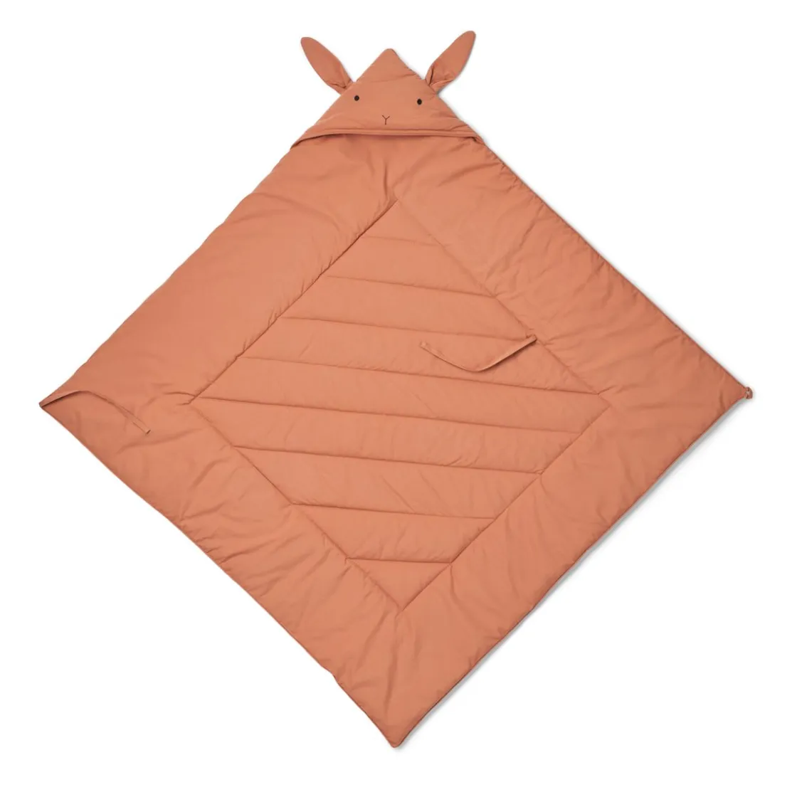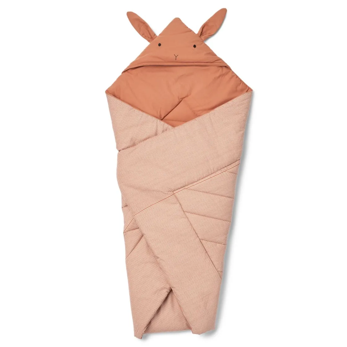 Die weiche Daxton Baumwolldecke lädt zum Kuscheln ein. Diese Decke aus 100 % Bio-Baumwolle und recyceltem Polyester hat eine süße Kapuze mit einem aufgestickten Hasengesicht und Ohren an der oberen Naht. Mit einem Kordelzug und einer Schlaufe, die mit einem Knopf geschlossen wird, hält dieses kuschelige Tuch im Stil einer Daunendecke dein Kind warm.