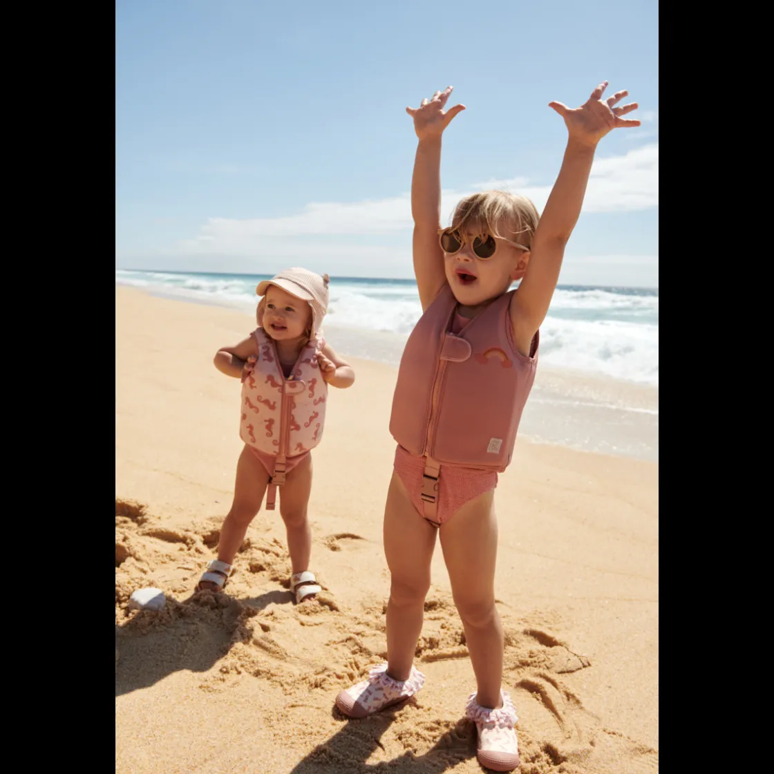 - Schwimmweste in verspielten Drucken oder einfarbig • Großartige Schwimmhilfe, um Vertrauen im Wasser zu gewinnen • Leichtes und flexibles Material für volle Bewegungsfreiheit • Einfach an- und auszuziehen mit einem Frontreißverschluss • Zusätzlicher Sicherheitsgurt für zwischen den Beinen • Die Hülle besteht aus weichem Neopren• Fällt klein aus – bitte eine Nummer größer wählen für die beste Passform