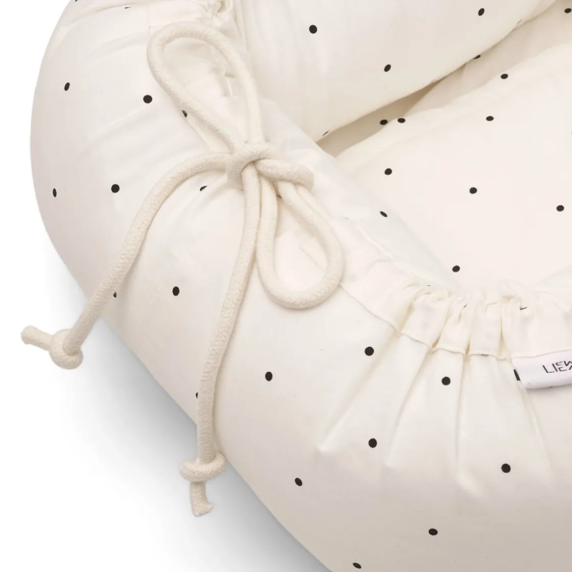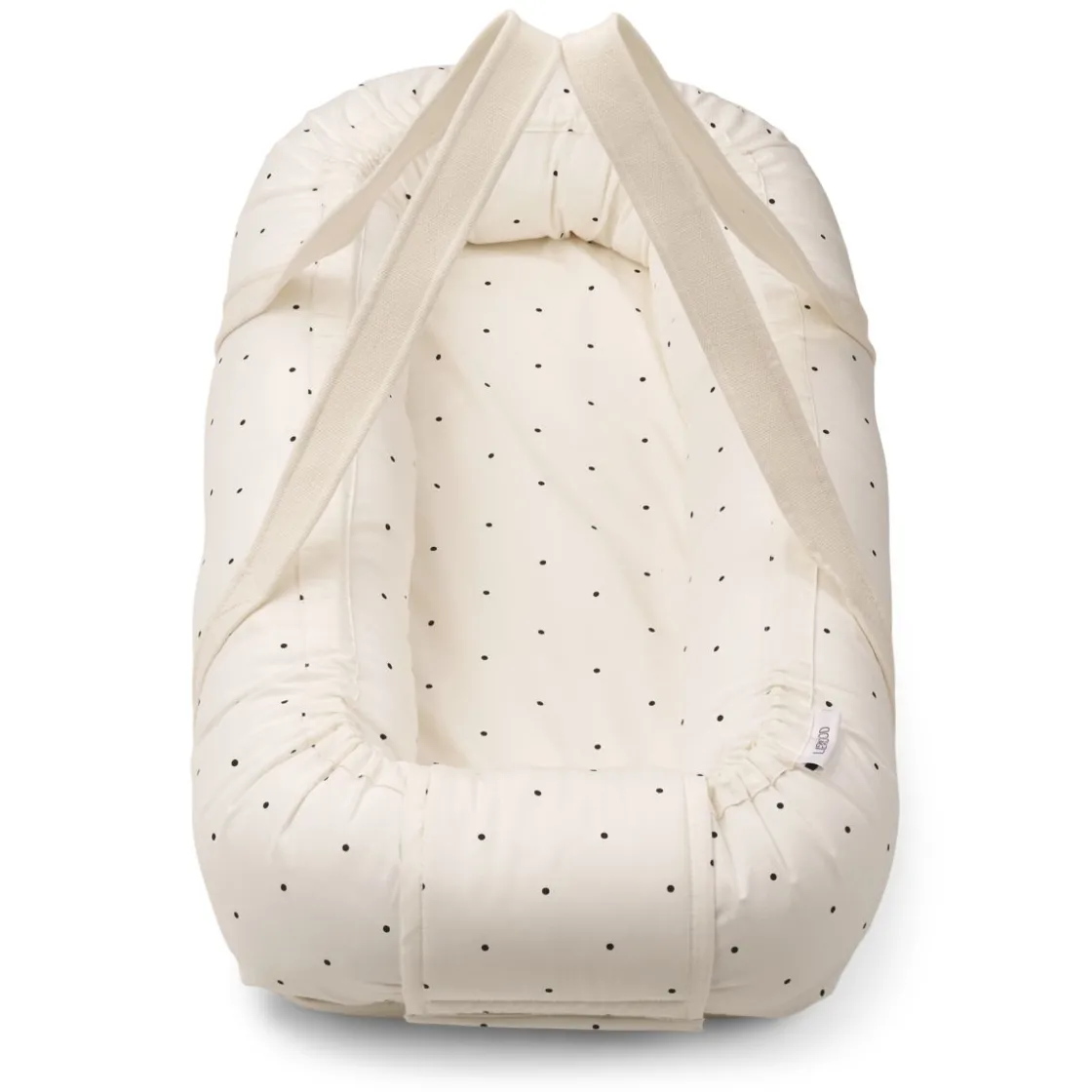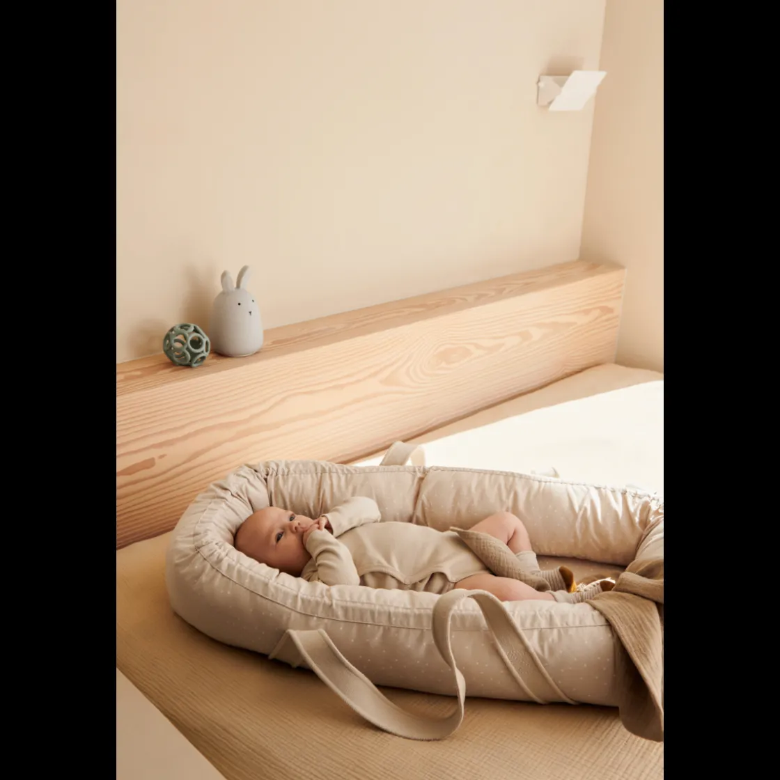 Die ultimative Verbindung von Baby-Lift und Nest mit Griffen für einfache Mobilität. Die Füllung, die Matratze und das Holzbrett sind abnehmbar, sodass der Bezug waschbar ist.
