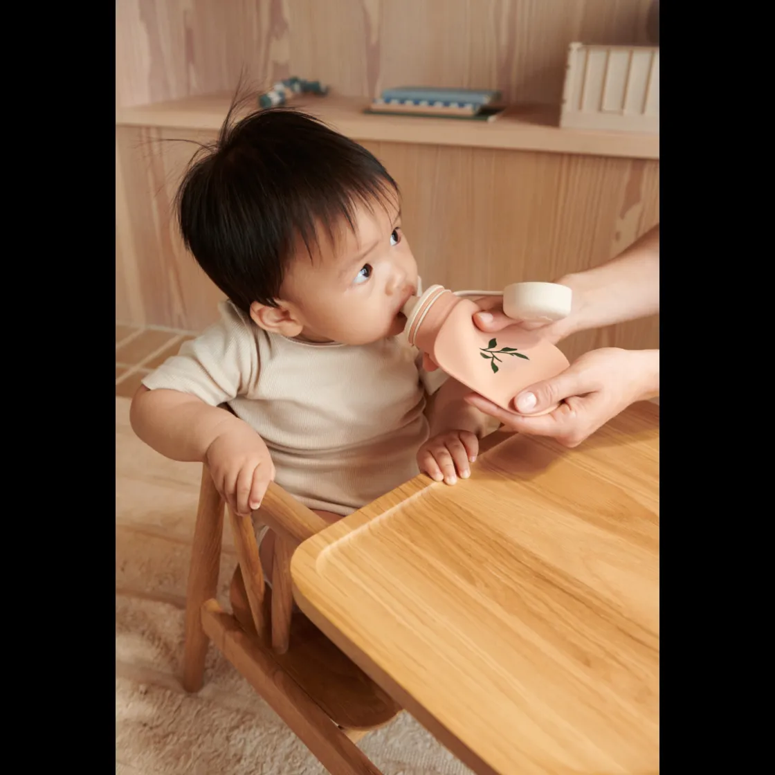- Silikon Smoothie-Flasche • Perfekt für selbstgemachte Speisen unterwegs • Aufsteckbarer weicher Löffel für gleichmäßiges Verteilen von Smoothies, Pürees und Brei • Weiche und quetschbare Flasche für kleine Hände