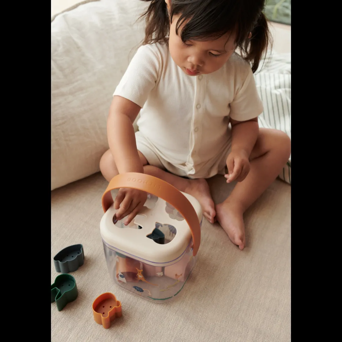 - Transparente Puzzle-Box mit abnehmbarem Griff und Deckel • Spielerische Unterstützung neuer Fähigkeiten • Unterstützung beim Formen-zum-Loch-Zuordnen • Jede Form mit kleinen Löchern als Mini-Sieb • Empfohlen für Kinder ab 12 Monaten