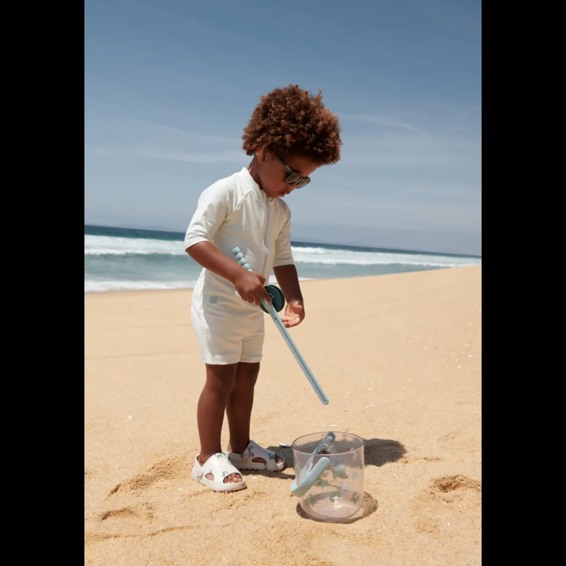 Lasse deine Kleinen mit dem schützenden Max Schwimm-Jumpsuit aus Seersucker-Material mit kurzen Ärmeln und hohem Kragen in der Sonne spielen.
