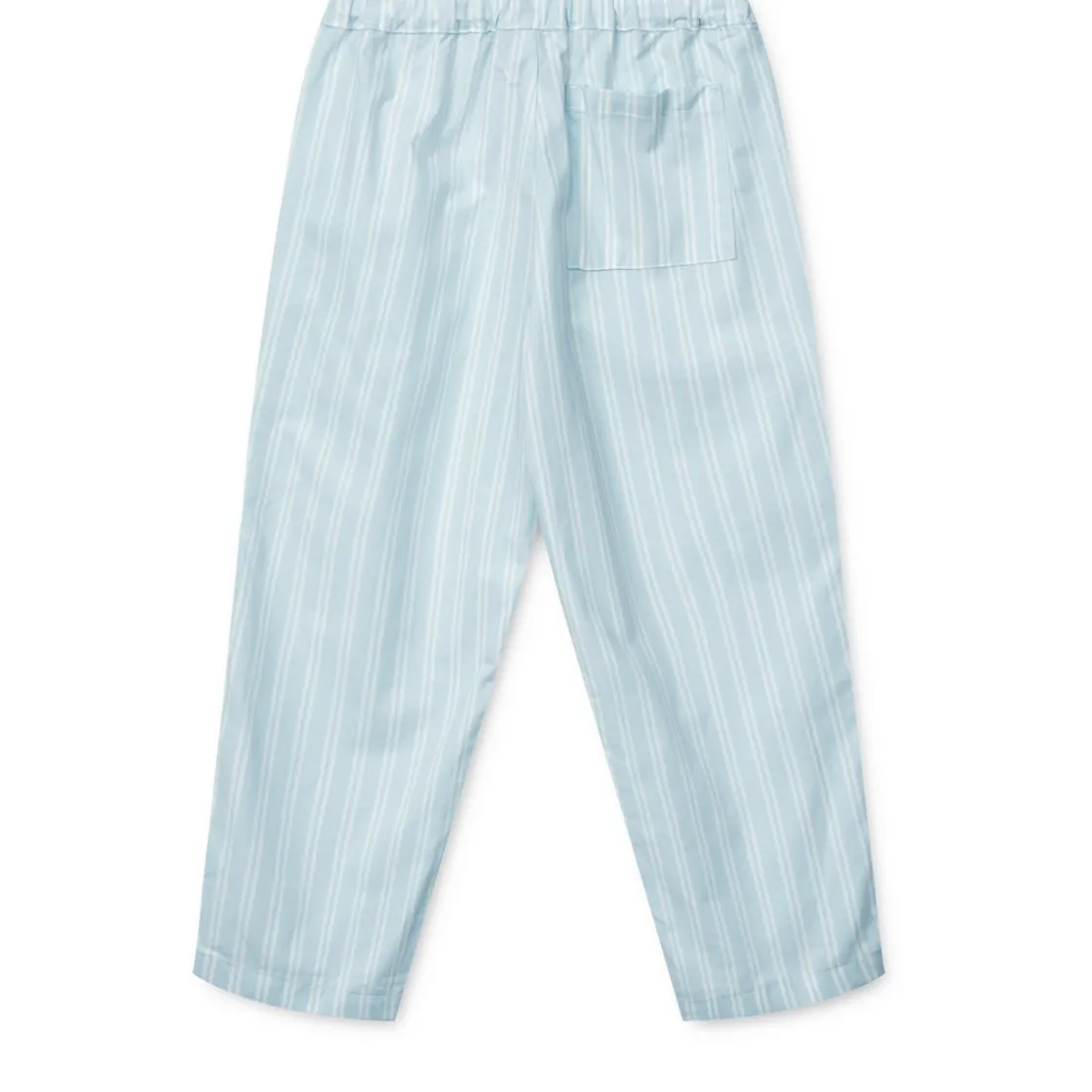 Die gestreiften Poplin-Hosen sind ein echtes Grundnahrungsmittel für jede Frühlings- und Sommergarderobe. Die Orlando-Hosen bieten eine klassische Silhouette aus atmungsaktiver, biologischer Baumwolle. Der verstellbare Kordelzug und die lockere Passform machen sie bequem für lange Spielstunden Ihrer Kinder.