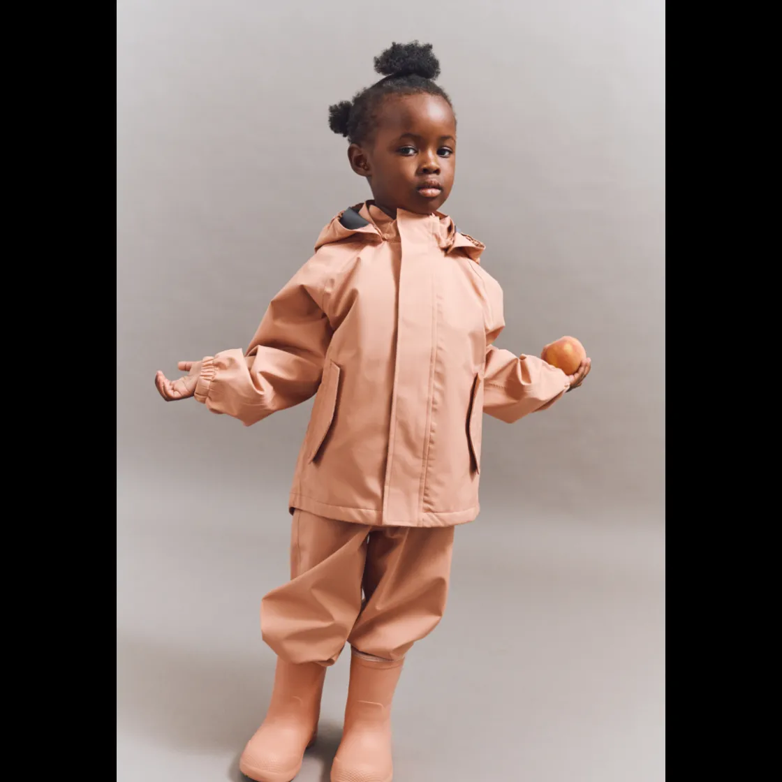 - Praktisches und verspieltes Regenbekleidungsset mit reflektierenden Details • Winddichte und atmungsaktive Softshell-Qualität • Wasserdicht bis 20.000 mm Wassersäule • Hergestellt aus GRS-zertifiziertem recyceltem Polyester • Versiegelte Nähte und Knopfleiste über dem Frontreißverschluss mit kinderfreundlichem Klettverschluss, der nicht an feinen Strickwaren hängen bleibt • Regenjacke mit abnehmbarer Kapuze • Regenhose mit elastischem Einsatz in der Taille mit Knöpfen zum Verstellen • Verstellbare Fußschlaufen aus Silikon