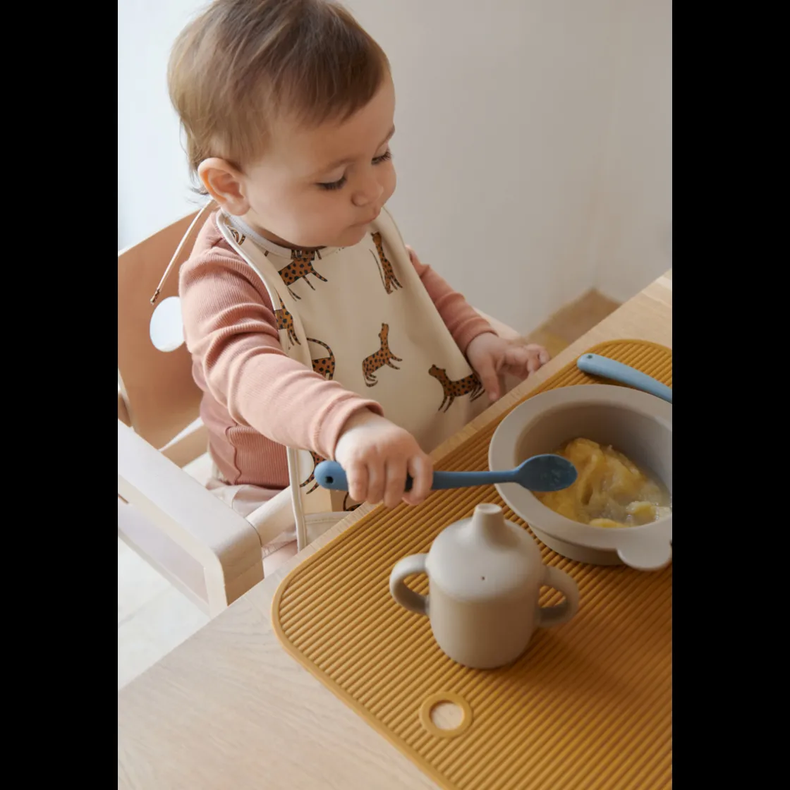 Die Peony Schüssel mit Saugnapf hat niedliche Tierdetails. Eine dünne Schicht aus Silikon sorgt auf der Unterseite dafür, dass sie gut an verschiedenen Oberflächen haftet. Auf diese Weise kippt sie nicht um, kann aber ganz leicht über einen Tisch geschoben werden.
