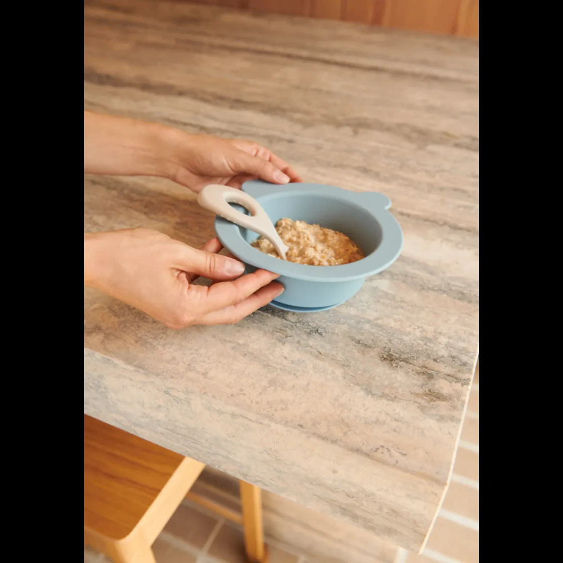 Die Peony Schüssel mit Saugnapf hat niedliche Tierdetails. Eine dünne Schicht aus Silikon sorgt auf der Unterseite dafür, dass sie gut an verschiedenen Oberflächen haftet. Auf diese Weise kippt sie nicht um, kann aber ganz leicht über einen Tisch geschoben werden.