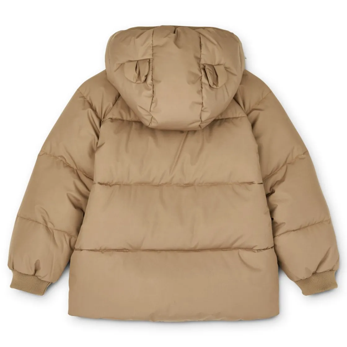 Praktisch und verspielt. Die winddichte und atmungsaktive Daunenjacke Polle ist eine leichte Isolationsjacke, die an kalten Tagen warm hält – mit einem süßen Paar zusätzlicher Ohren.