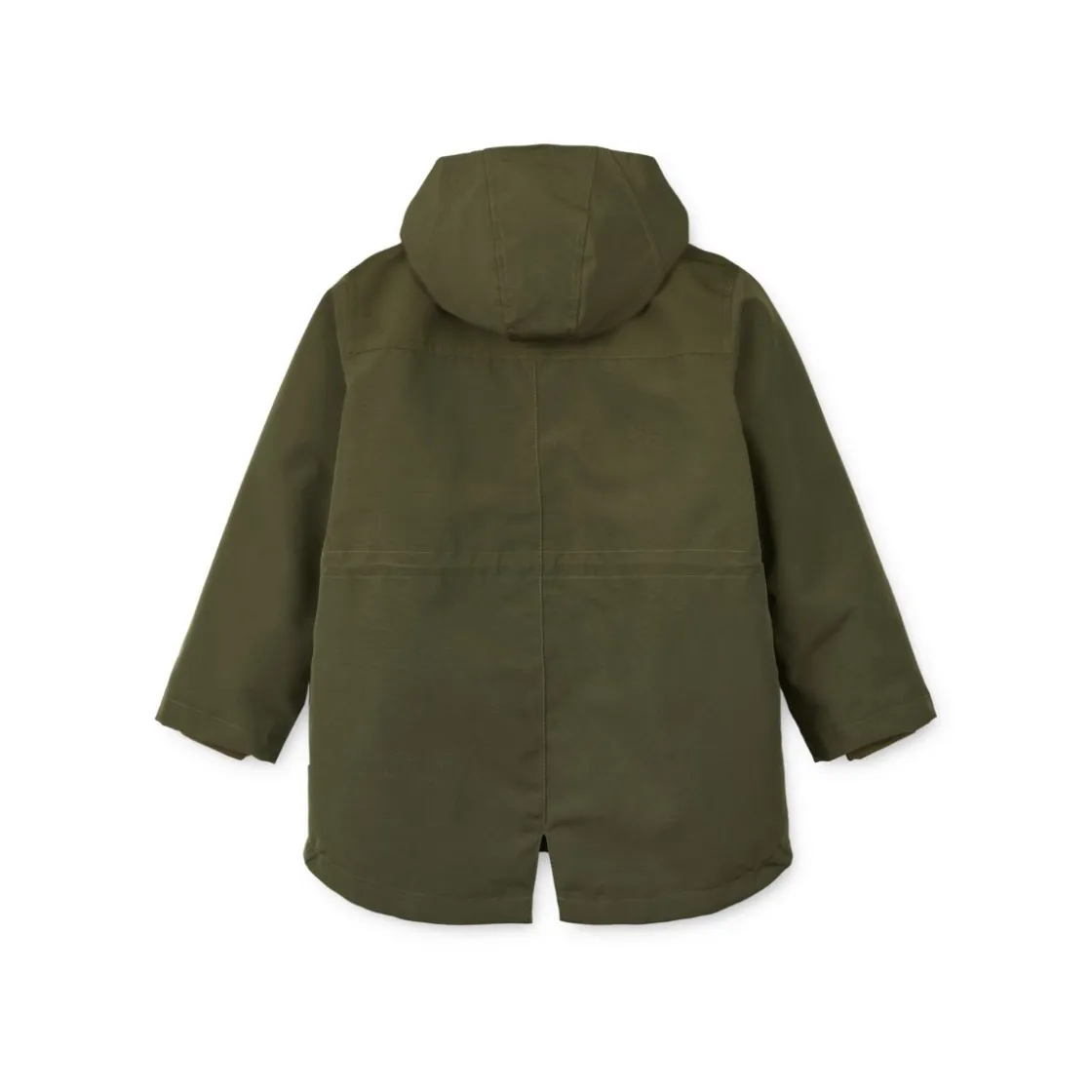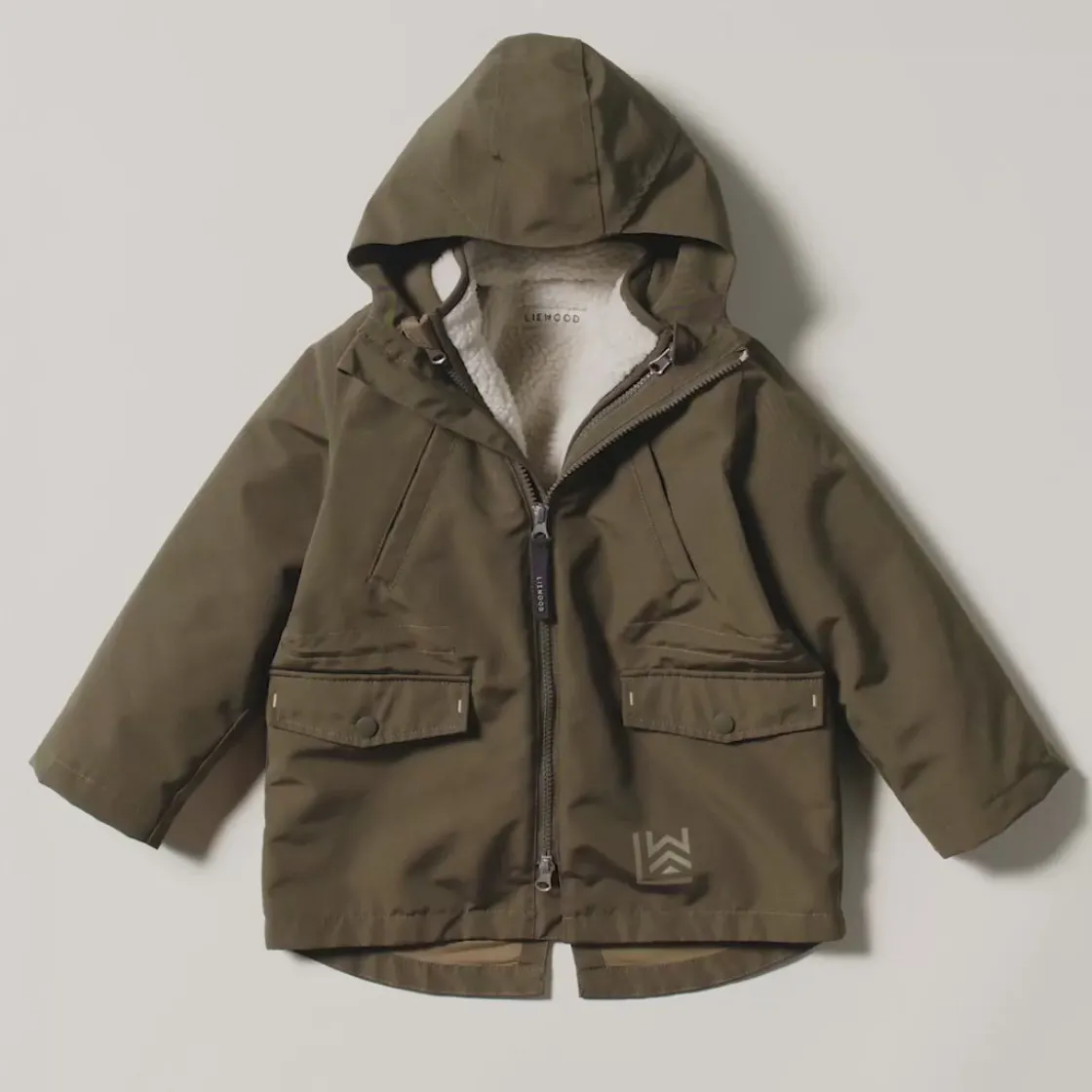 - Wasserdichte, lange gepolsterte Außenjacke mit verstellbarer Taille, Kapuze und mehreren Taschen