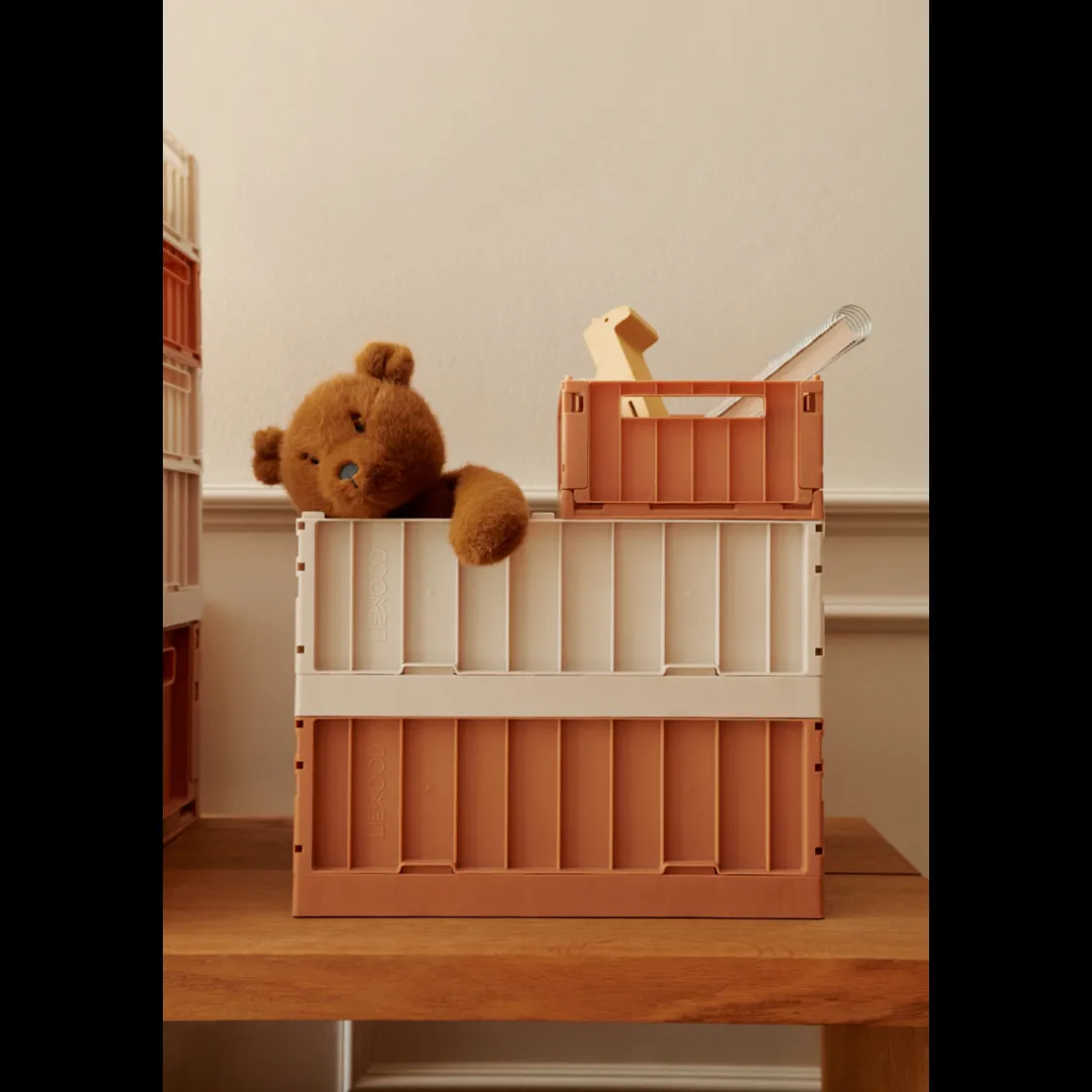 - Mittelgroße Aufbewahrungsboxen in verspielten Farben • Gefertigt aus strapazierfähigem, leichtem und 60 % recyceltem PP • Ideal für das Kinderzimmer, Schlafzimmer oder Büro • Stapelbar und faltbar mit ausgeschnittenen Griffen • Wird flach verpackt geliefert