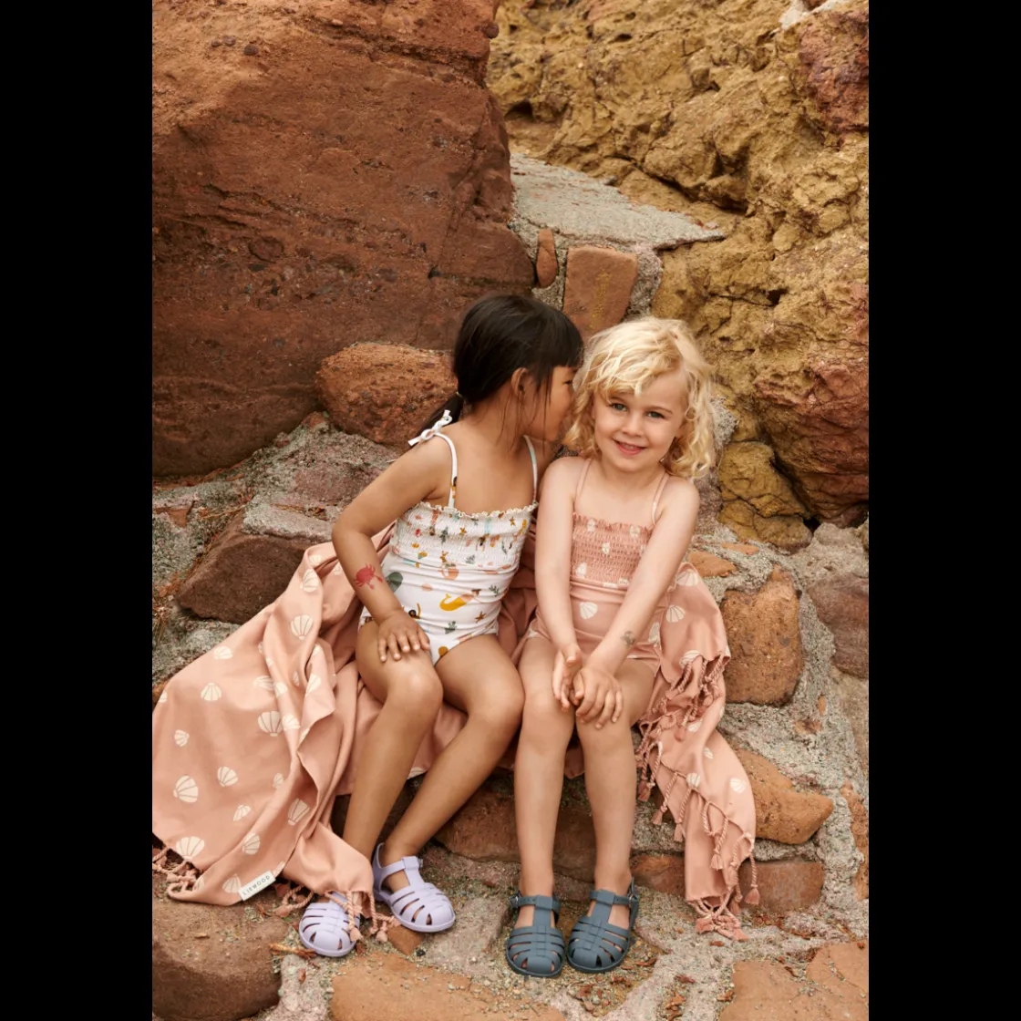 STRANDSANDALEN Die Bre Sandalen sind biegsame Strandsandalen für Kinder, die frei von schädlichen Chemikalien sind. Perfekt für den Strand, da das PVC kein Wasser aufnimmt. Die Sohlen der kleineren Größen (19-30) sind mit lustigen Pandas versehen, mit denen die Kleinsten ihre Spuren auf weichen Oberflächen hinterlassen können.