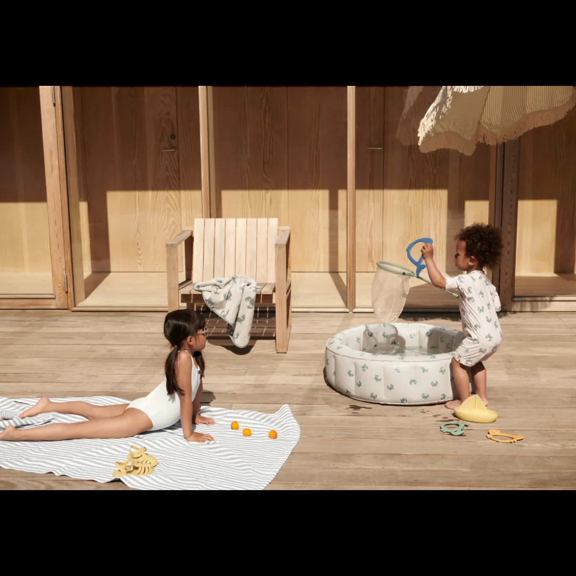 Lasse deine Kleinen mit dem schützenden Max Schwimm-Jumpsuit mit kurzen Ärmeln und hohem Kragen in der Sonne spielen.