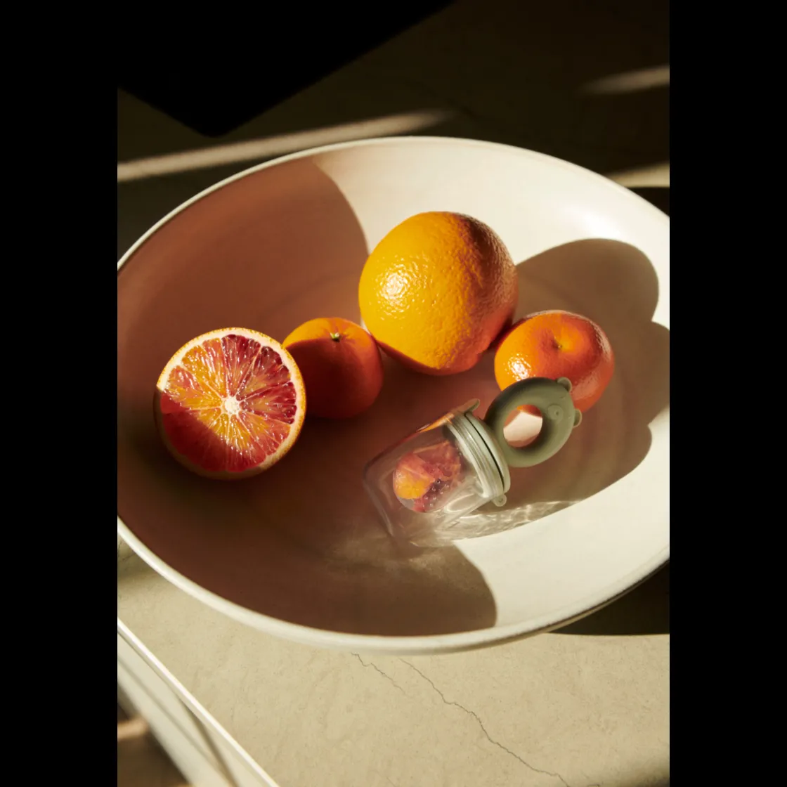 Jeder Anfang ist schwer, und doch kann sich die Entdeckung der festen Lebensmittel zu einem sinnlichen Abenteuer entwickeln. Die Miranda Fütterhilfe ist das perfekte Zubehör, um die Jüngsten an feste Nahrung heranzuführen. Der einfache Behälter für kleine Portionen ist mit perforierten Saugern, die nur ein wenig vom Essen durchlassen, sowie einem Beißring ausgestattet.