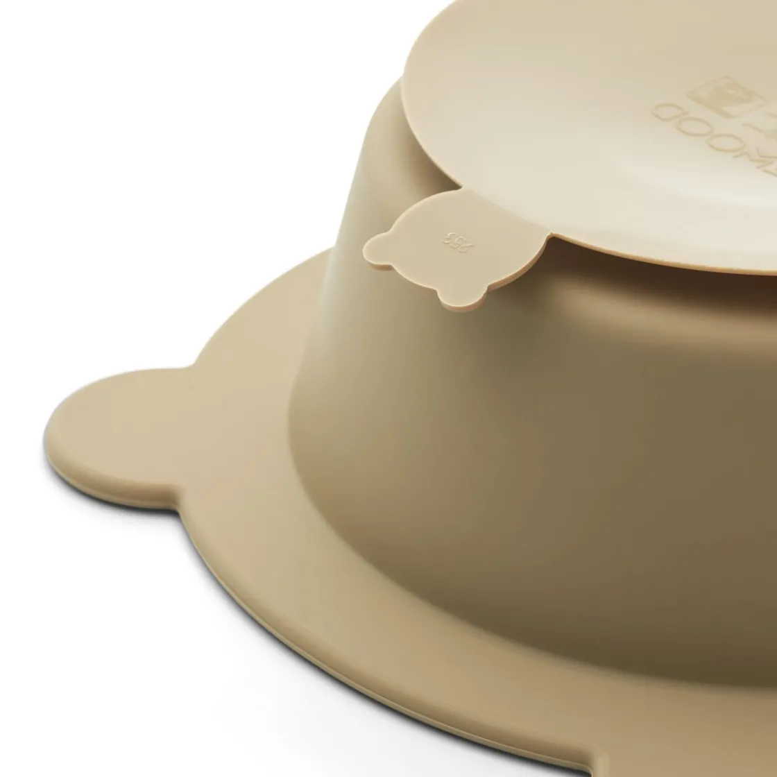 Die Peony Schüssel mit Saugnapf hat niedliche Tierdetails. Eine dünne Schicht aus Silikon sorgt auf der Unterseite dafür, dass sie gut an verschiedenen Oberflächen haftet. Auf diese Weise kippt sie nicht um, kann aber ganz leicht über einen Tisch geschoben werden.