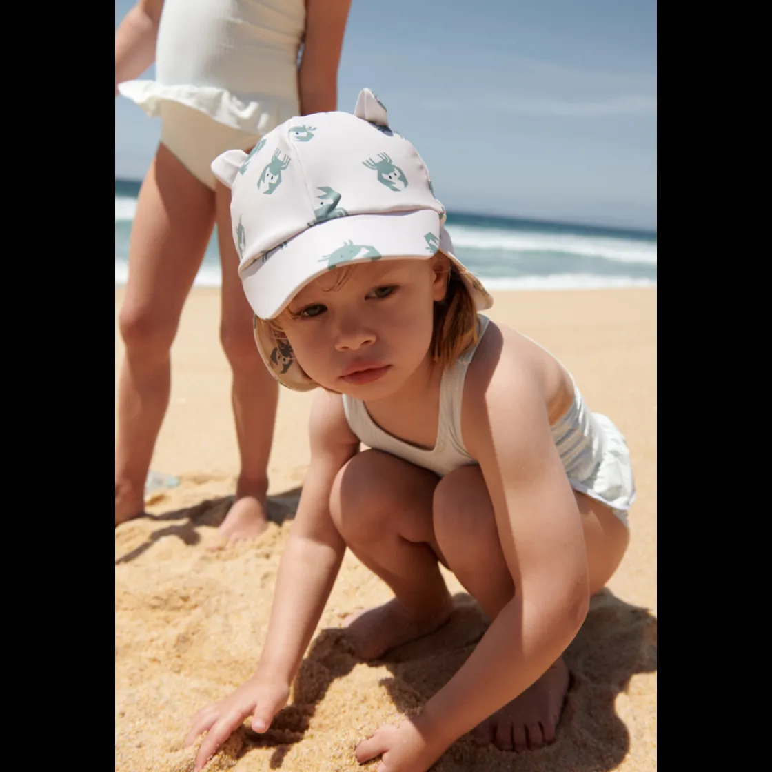 Niedlicher, praktischer Sonnenhut für Kinder aus recyceltem Polyester und demselben dehnbaren Material wie die LIEWOOD Bademode.